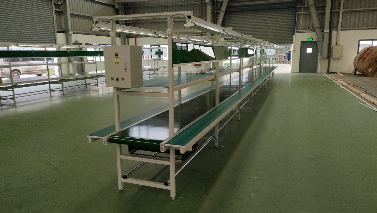 - Hệ thống điện : ổ cắm 3 chấu chạy dọc băng